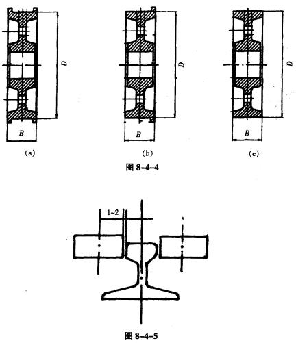 ②按結(jié)構(gòu)形式分,如圖8-4-4所示,有雙輪緣、單輪緣和無輪緣車輪,車輪踏面為圓柱形踏面,葫蘆式起重機運行車輪多采用雙輪緣圓柱形踏面車輪。